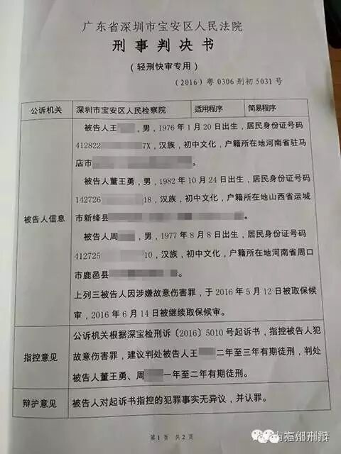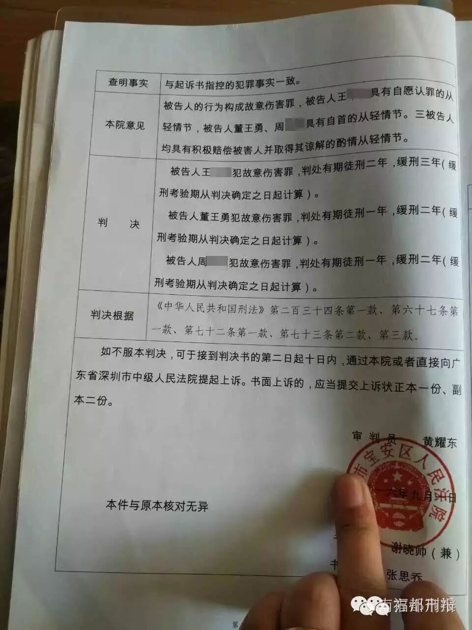 老家司法局工作人员将深圳宝安法院出具的《刑事判决书》、《缓刑罪犯告知书》通过微信发给董王勇。董王勇发现,判决书上的姓名、身份证号、户籍地址与自己的完全一致。