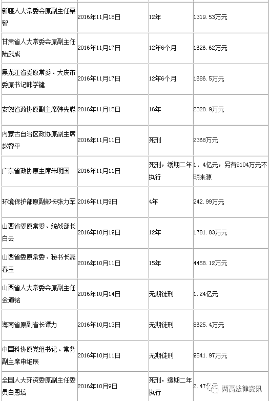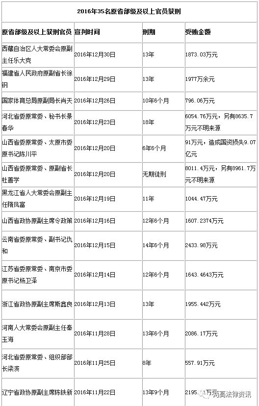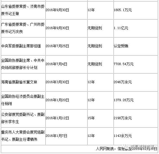 2016年35名“大老虎”领刑:7人无期 首现死刑